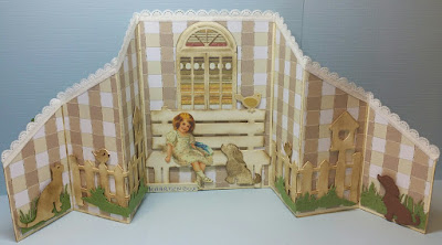 Neem 2 keer karton van 13,5 cm bij 25 cm. Ril op de stippellijn. de delen van 10 cm op elkaar plakken en de kaart afwerken naar eigen inzicht. Succes ermee.